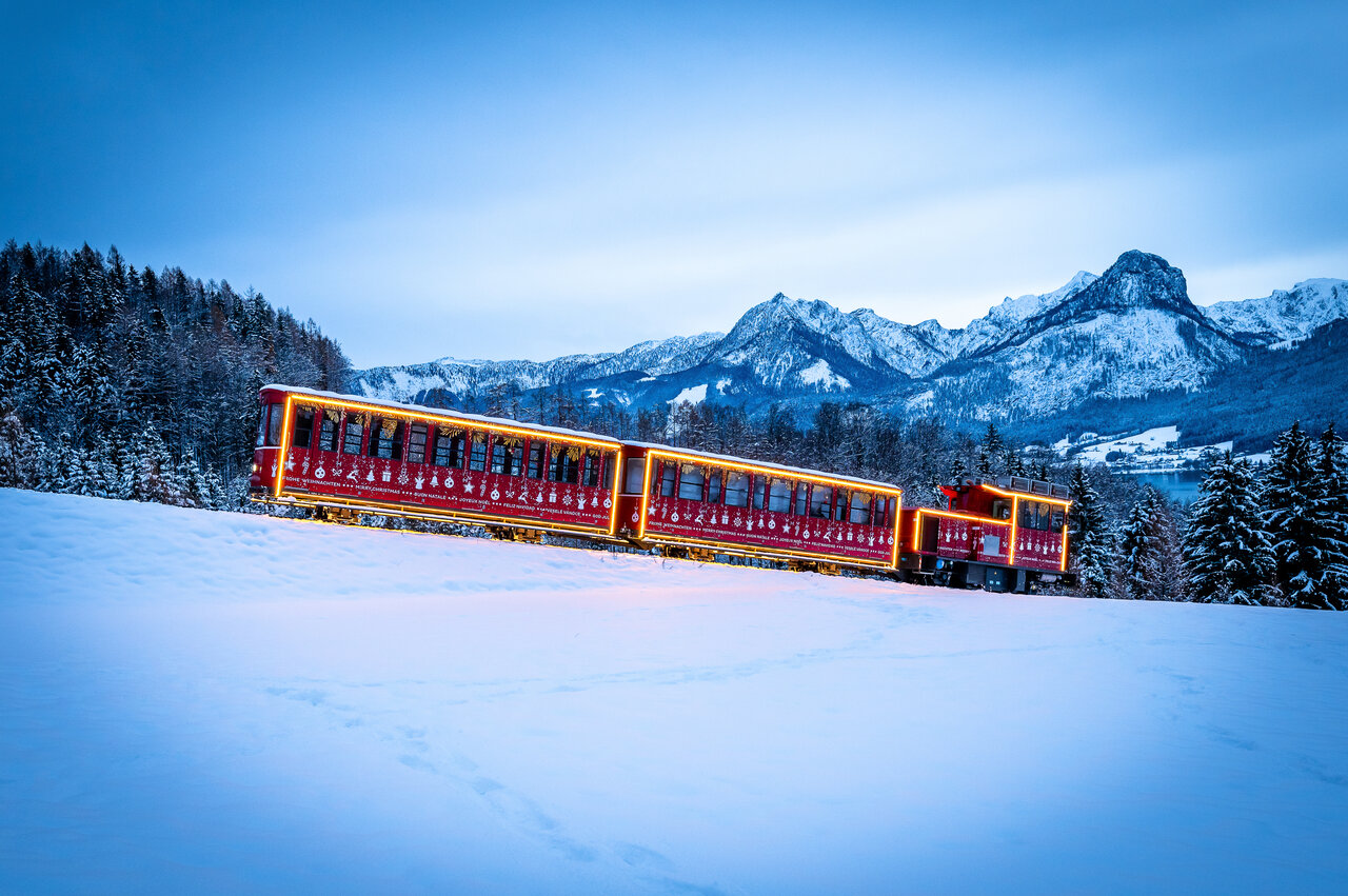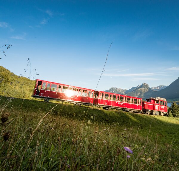 Wer’s gemütlich mag, steigt in die Schafbergbahn – eine Zahnradbahn mit über 130 Jahren Geschichte. In rund 35 Minuten bringt sie dich über fast 1.200 Höhenmeter vom Tal bis nahe zum Gipfel. Dort wartet ein Panoramablick über bis zu 14 Seen, vom Wolfgangsee bis zum Attersee.